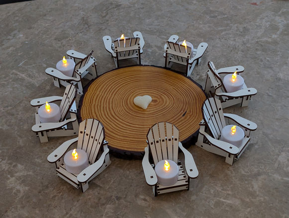 These miniature Muskoka Chairs area fun way to bring more Muskoka inside. They stand approximately 3.25" tall, and feature a flat seat that's 1.5" deep and 1.75" wide, perfect for flameles tea lights.
